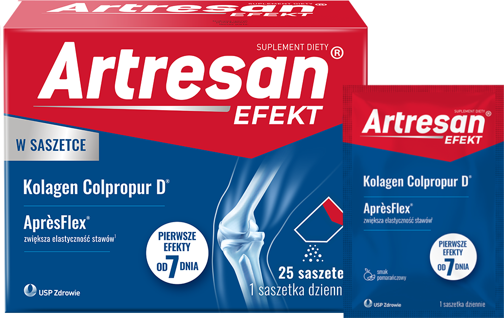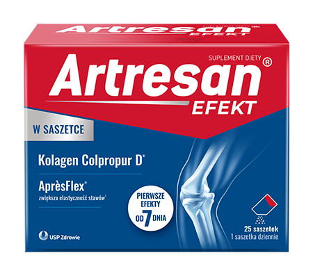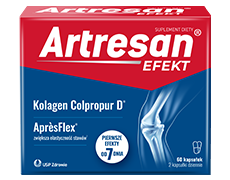 * Poszczególne produkty Artresan® zawierają witaminę C, która pomaga w prawidłowej produkcji kolagenu w celu zapewnienia prawidłowego funkcjonowania chrząstki, miedź, która przyczynia się do utrzymania prawidłowego stanu tkanki łącznej, mangan, który pomaga w prawidłowym tworzeniu tkanek łącznych i imbir, który pomaga utrzymać prawidłową ruchomość stawów.